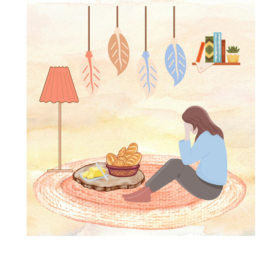 membawa roti tawar keju yang baru keluar dari panggangan.